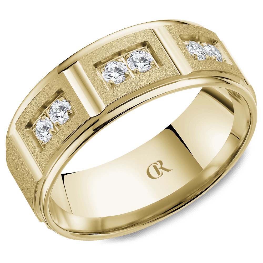 An 8.00mm CR Collection Wedding Band in Yellow gold with 6 RD, TCW 0.30ct