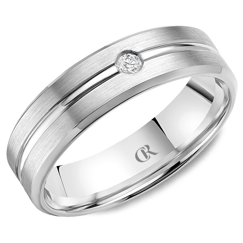 A 6.00mm CR Collection Wedding Band in White gold with 1 RD, TCW 0.05ct