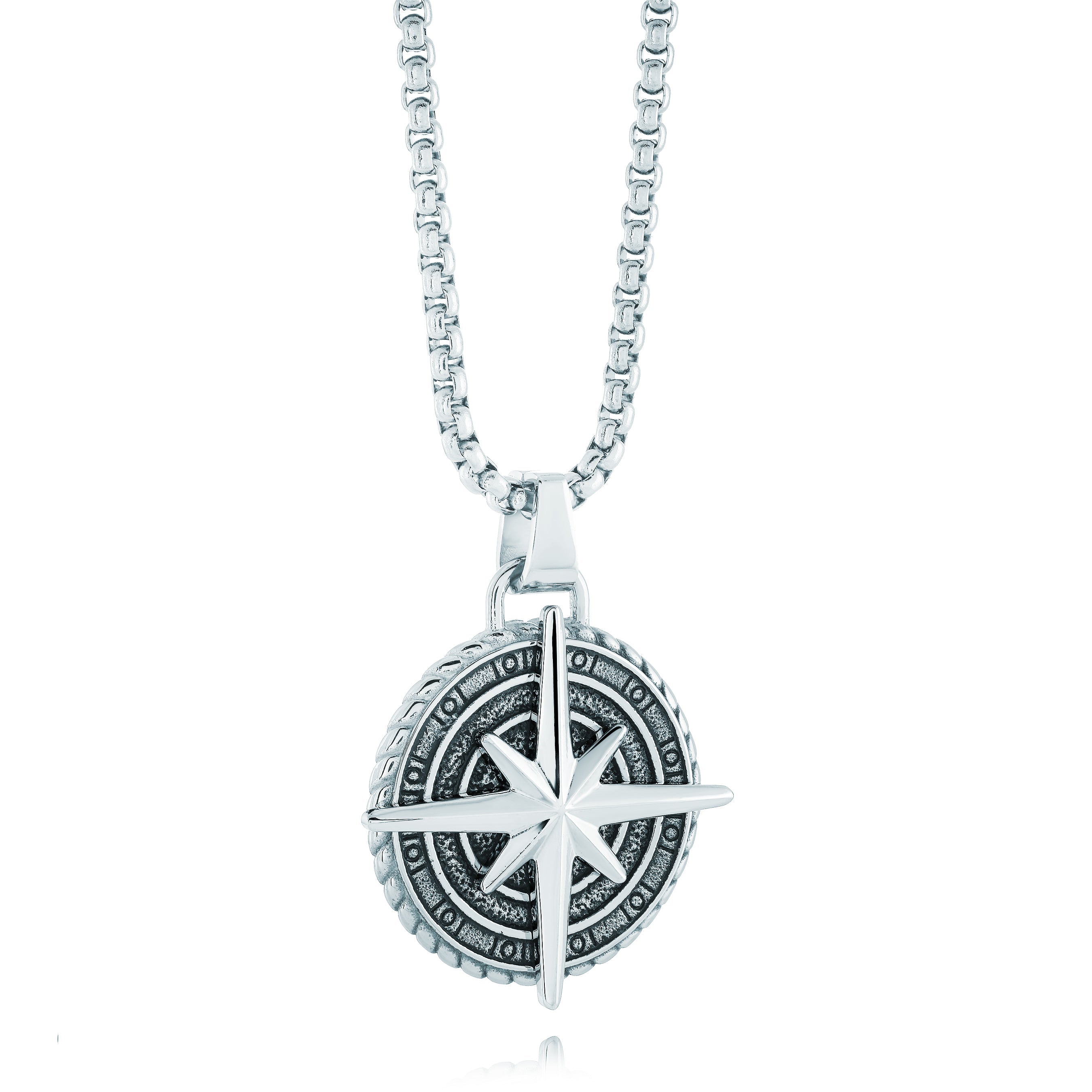 Get inspired by the NORTH STAR COMPASS PENDANT! This beautiful pendant, made from stainless steel, has an intricate and detailed design, with the north star in the middle. The perfect accessory to add a unique touch to your look. Guide your way in style!