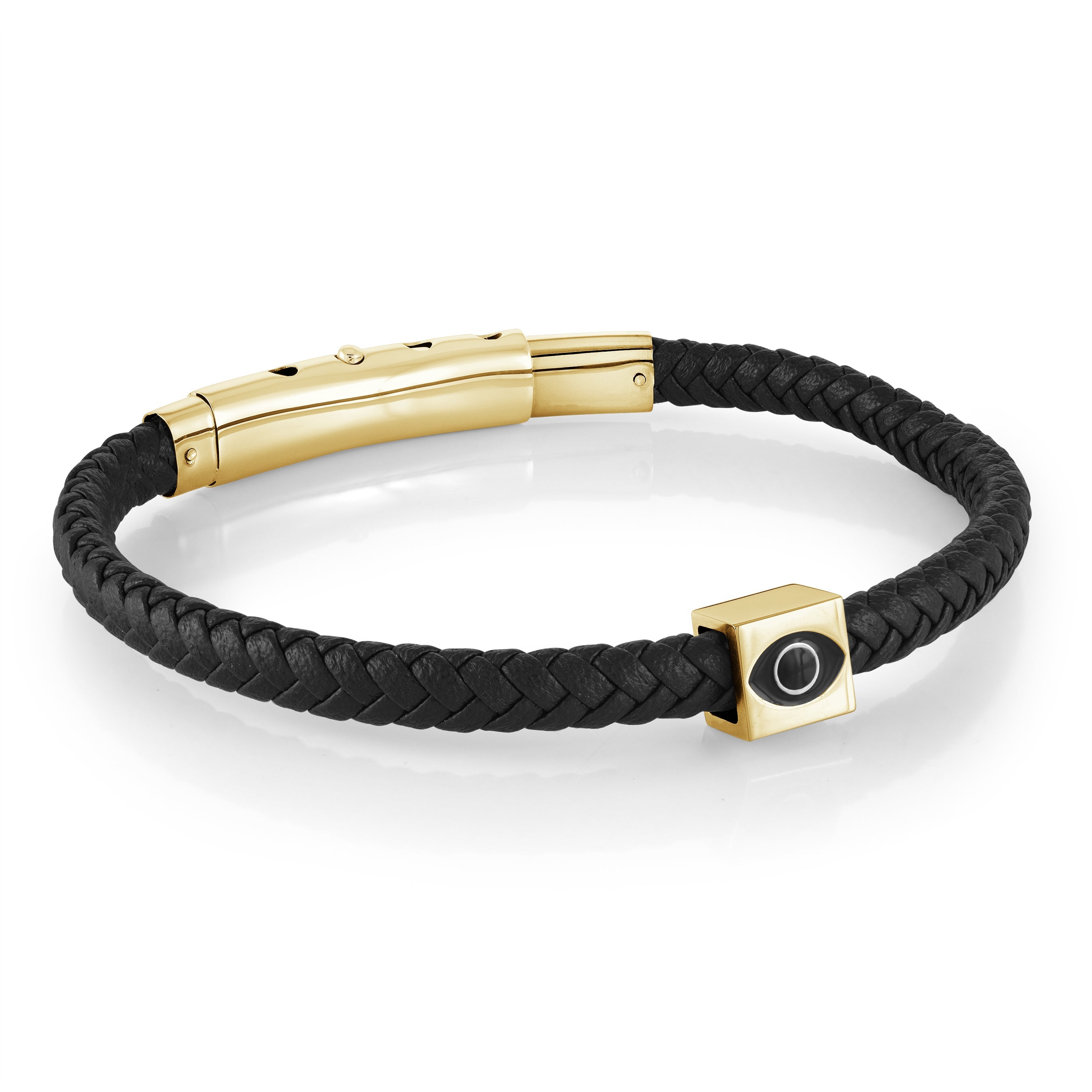 Evil Eye Adjustable Leather Bracelet - BLACK / SILVER