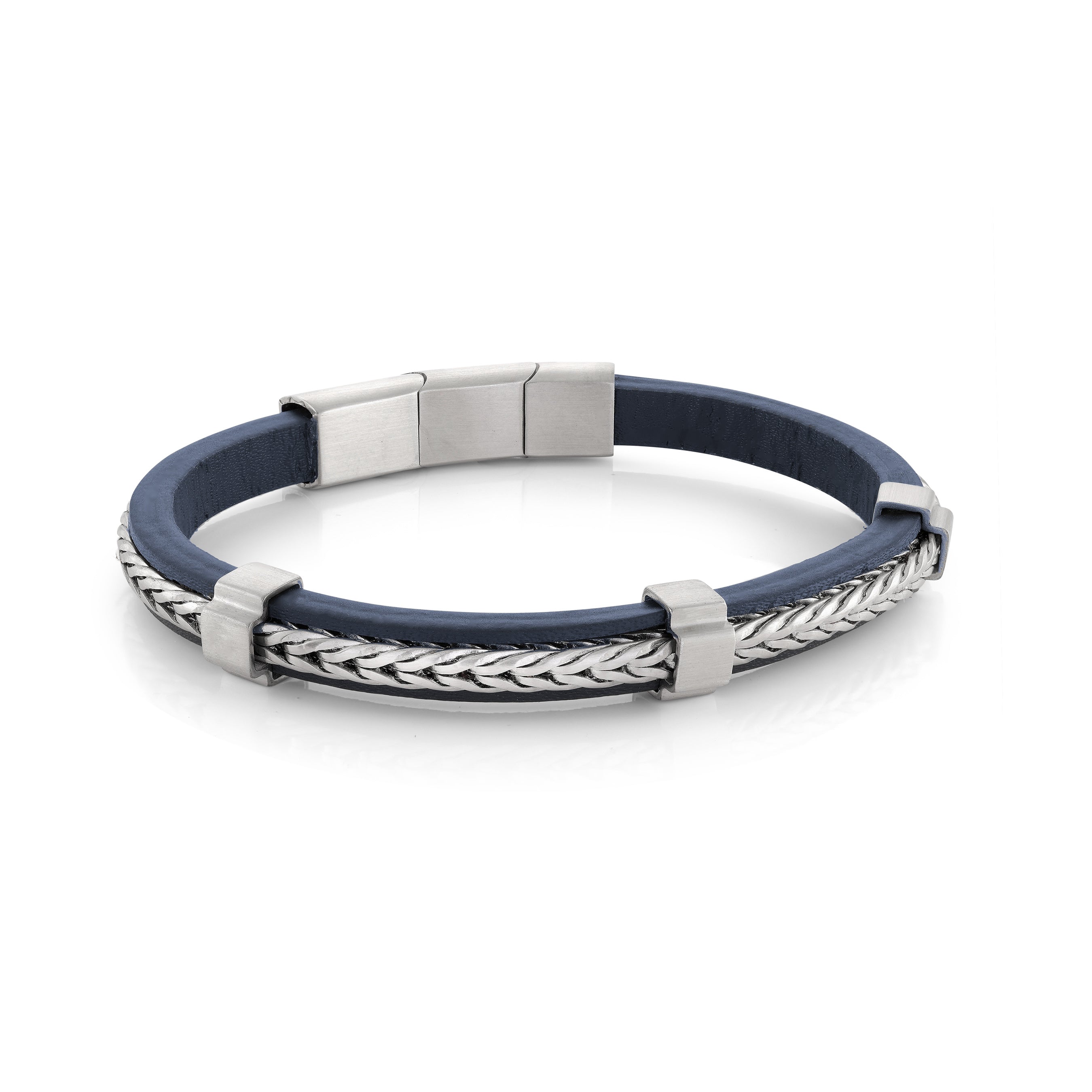 Leather & Franco Bracelet 7mm - 7.5+0.5 INCHES / BLUE