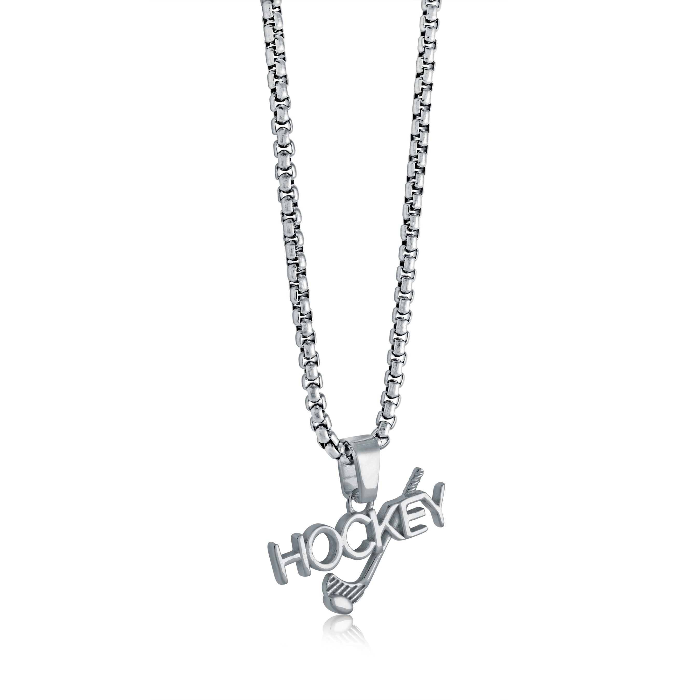 Our Hockey Pendant Necklace is designed to be lightweight and comfortable to wear. Crafted from durable stainless steel, it features a detailed pendant that captures the spirit of hockey. This timeless necklace is sure to be a hit for any fan!