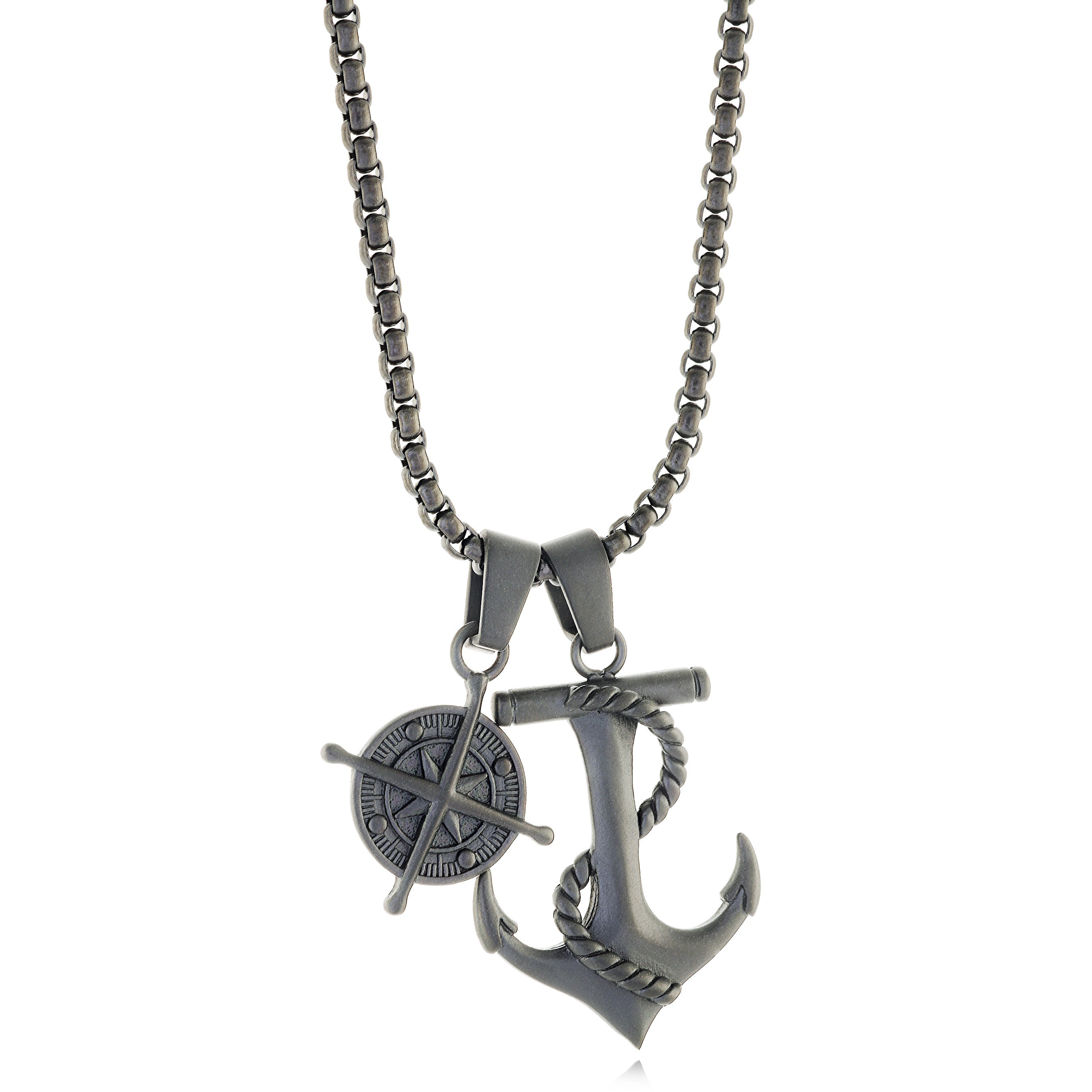Dress up your look with this stylish Anchor & Compass Pendant. Perfect for a modern man's taste, the pendant features a classic anchor and compass design that's sure to make an impression.