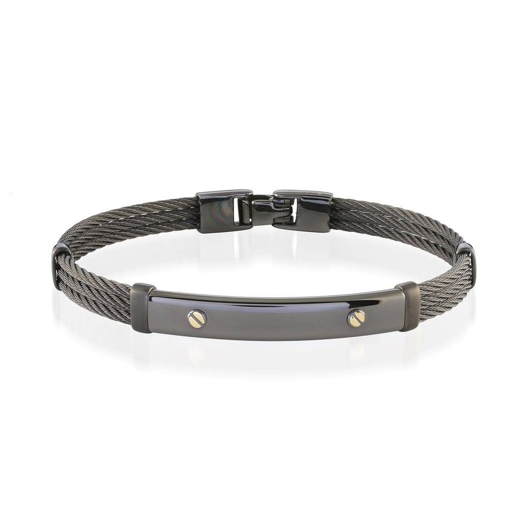 Elevate your style with the sophisticated Cable Bracelet 7mm. Crafted with 18K yellow gold accents and black ion plated stainless steel and 3 rows of cables, this bracelet is the perfect addition to your wardrobe. So stylish and fashionable, this accessory will make a bold statement anytime you wear it!