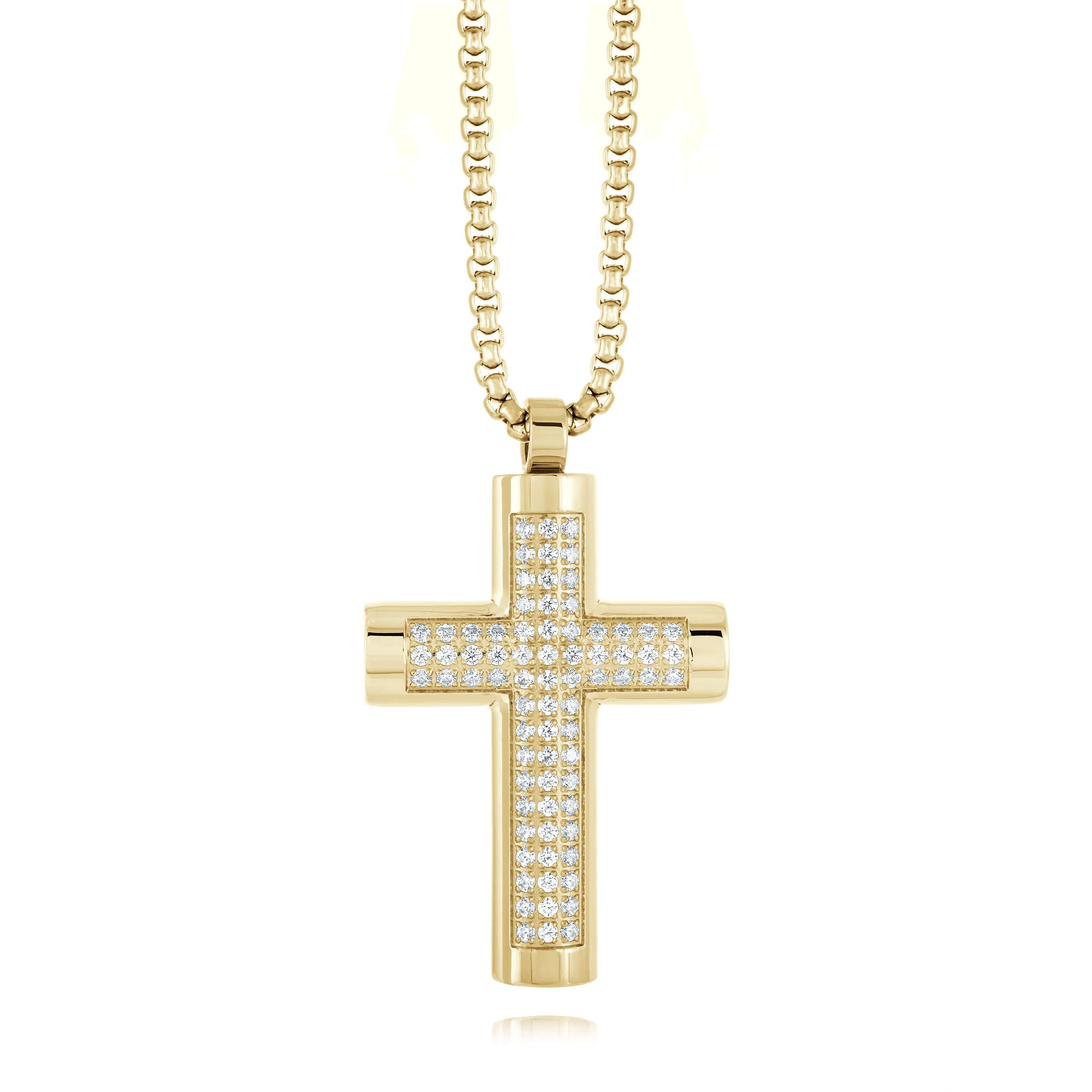 Our Triple Studded Cross Pendant combines classic elegance with modern sophistication. Featuring three meticulously set rows of sparkling studs, this pendant radiates brilliance and style. Crafted from high-quality materials, it ensures both durability and a stunning appearance, making it perfect for everyday wear or special occasions. Ideal for those who appreciate meaningful accessories with a touch of glamour, our Triple Studded Cross Pendant is a timeless and striking addition to any jewelry collection.