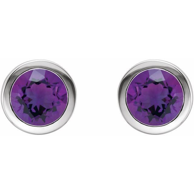 Description : Natural Amethyst Bezel-Set Stud Earrings