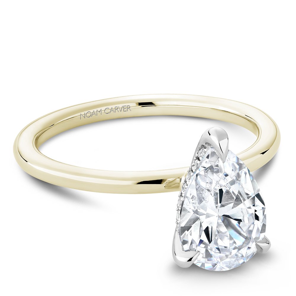 A NOAM CARVER BRIDAL Engagement Ring in Yellow Shank with White Head gold with 16 Diamond RD, TCW 0.003 ct