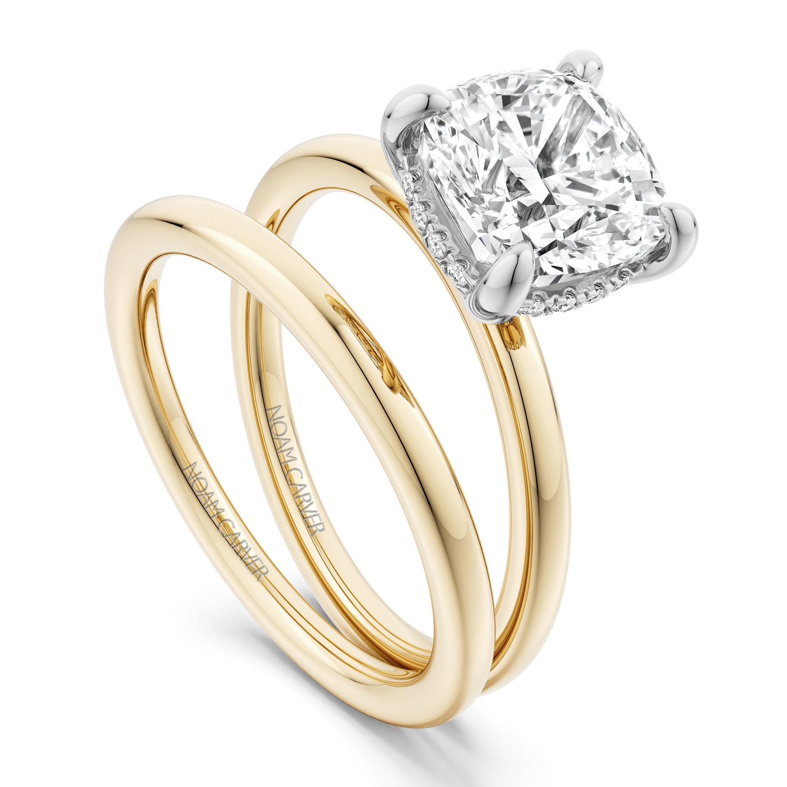 A NOAM CARVER BRIDAL Engagement Ring in Yellow Shank with White Head gold with 16 Diamond RD, TCW 0.003 ct