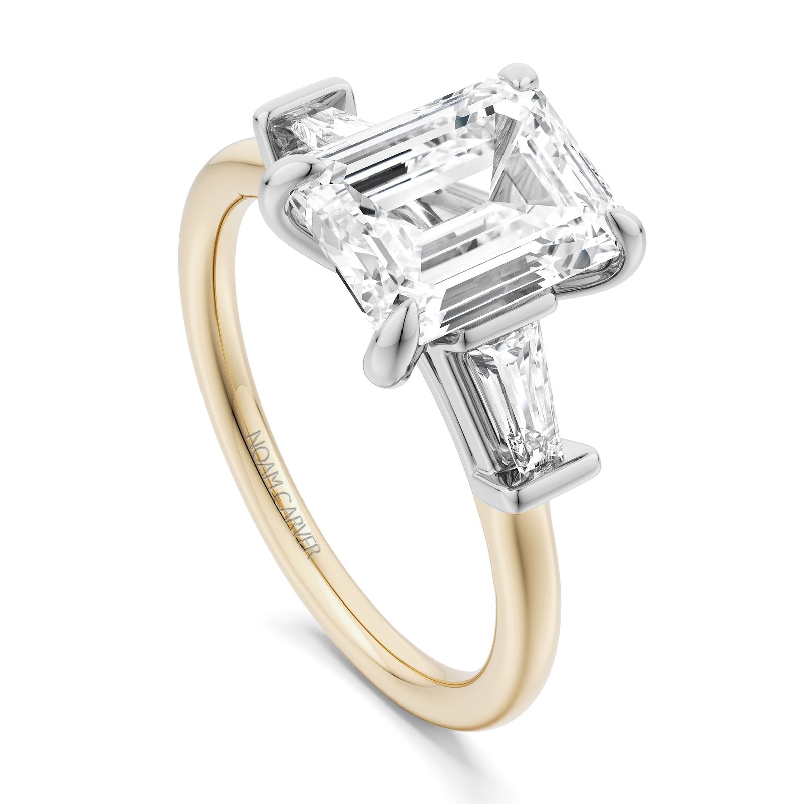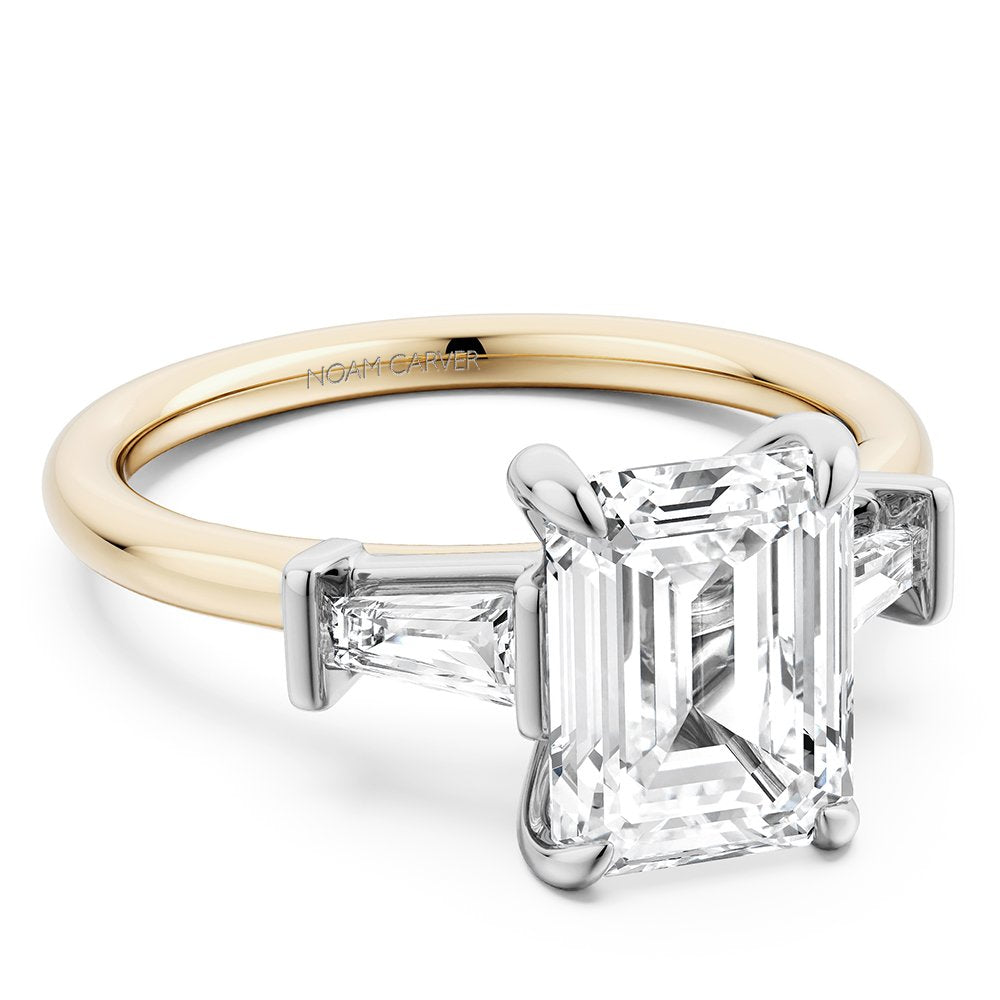 A NOAM CARVER BRIDAL Engagement Ring in Yellow Shank with White Head gold with 2 Diamond TB, TCW 0.15 ct