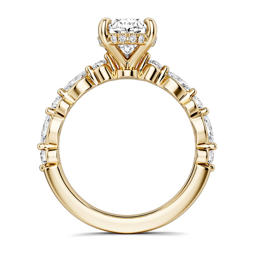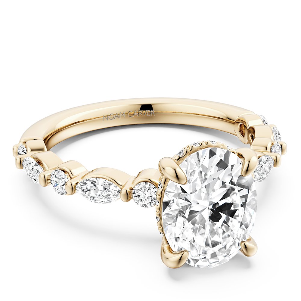 A NOAM CARVER BRIDAL Engagement Ring in Yellow gold with 16 Diamond RD, TCW 0.003 ct & 6 Diamond RD, TCW 0.034 ct & 4 Diamond MAR, TCW 0.1 ct