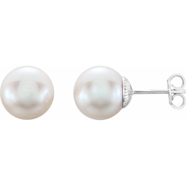 Sterling Silver 9.5- Cultured Freshwater Pearl Earrings - Sterling Silver