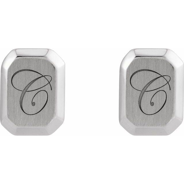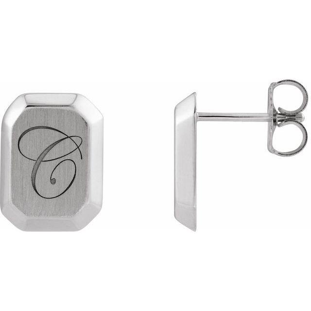 Sterling Silver Engravable Geometric Stud Earrings - Sterling Silver