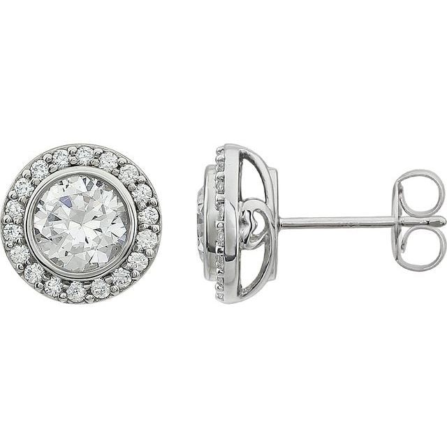 Sterling Silver Imitation Cubic Zirconia Halo-Style Earrings