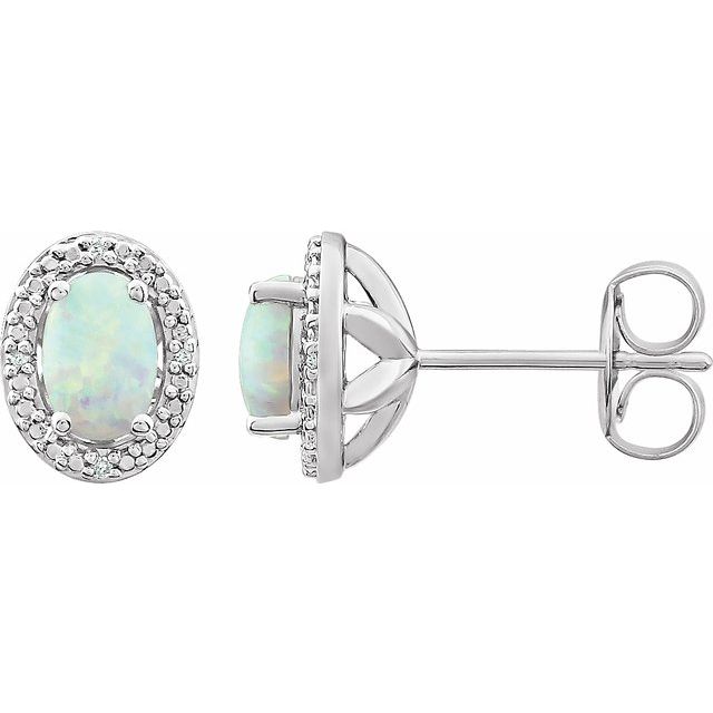 Description : Lab-Grown Opal And .025 Ctw Natural Diamond Earrings