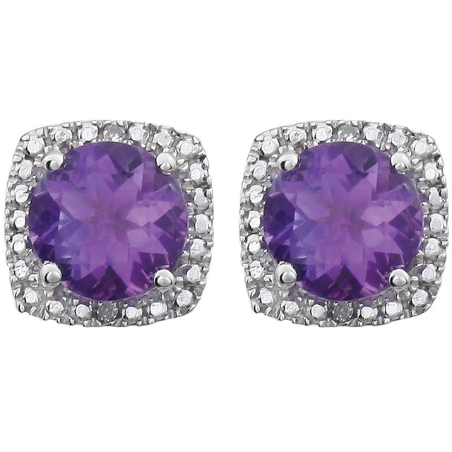 Sterling Silver Natural Amethyst & .015 CTW Natural Diamond Earrings