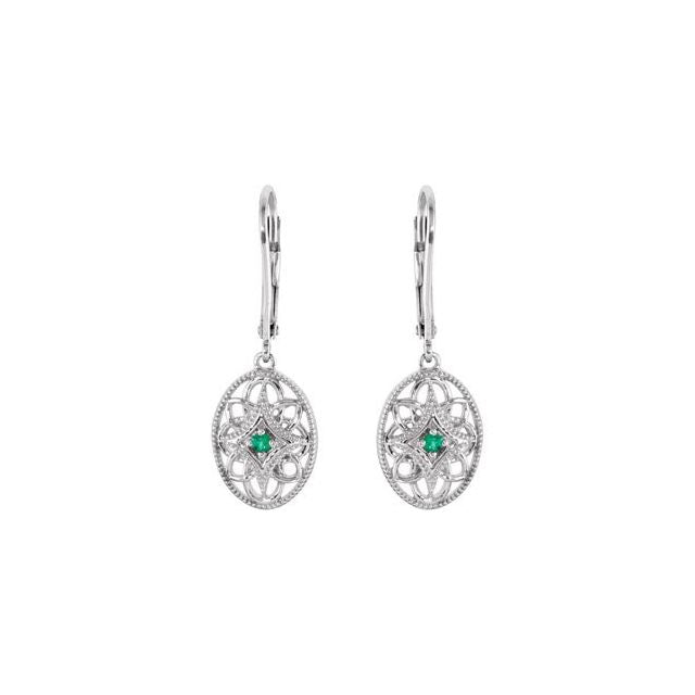 Sterling Silver Natural Emerald Lever Back Earrings - Sterling Silver