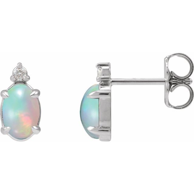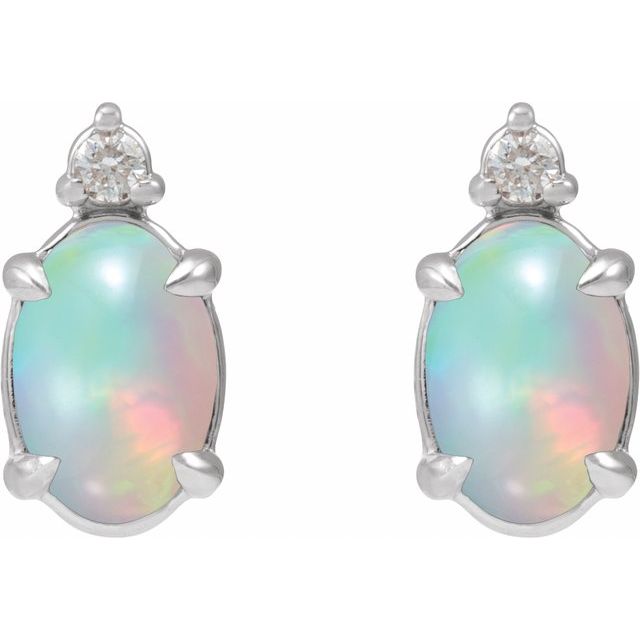 Sterling Silver Natural Ethiopian Opal Cabochon & .03 CTW Natural Diamond Earrings