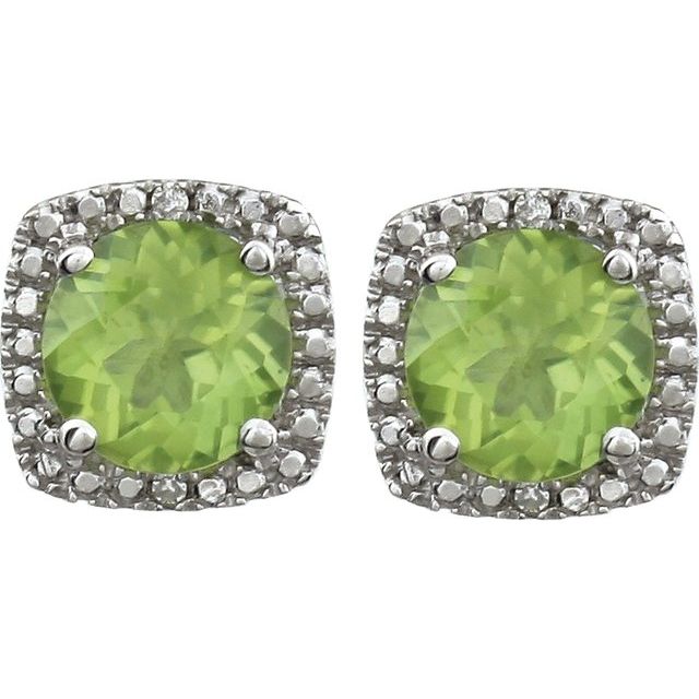 Sterling Silver Natural Peridot & .015 CTW Natural Diamond Earrings