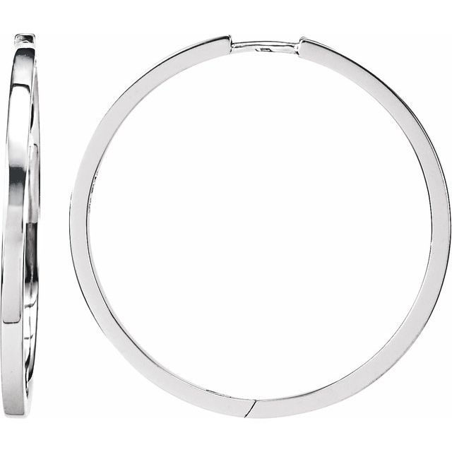 Sterling Silver Square Tube Hinged Hoop Earrings - Sterling Silver / 32.8 Mm / 1.9 Mm