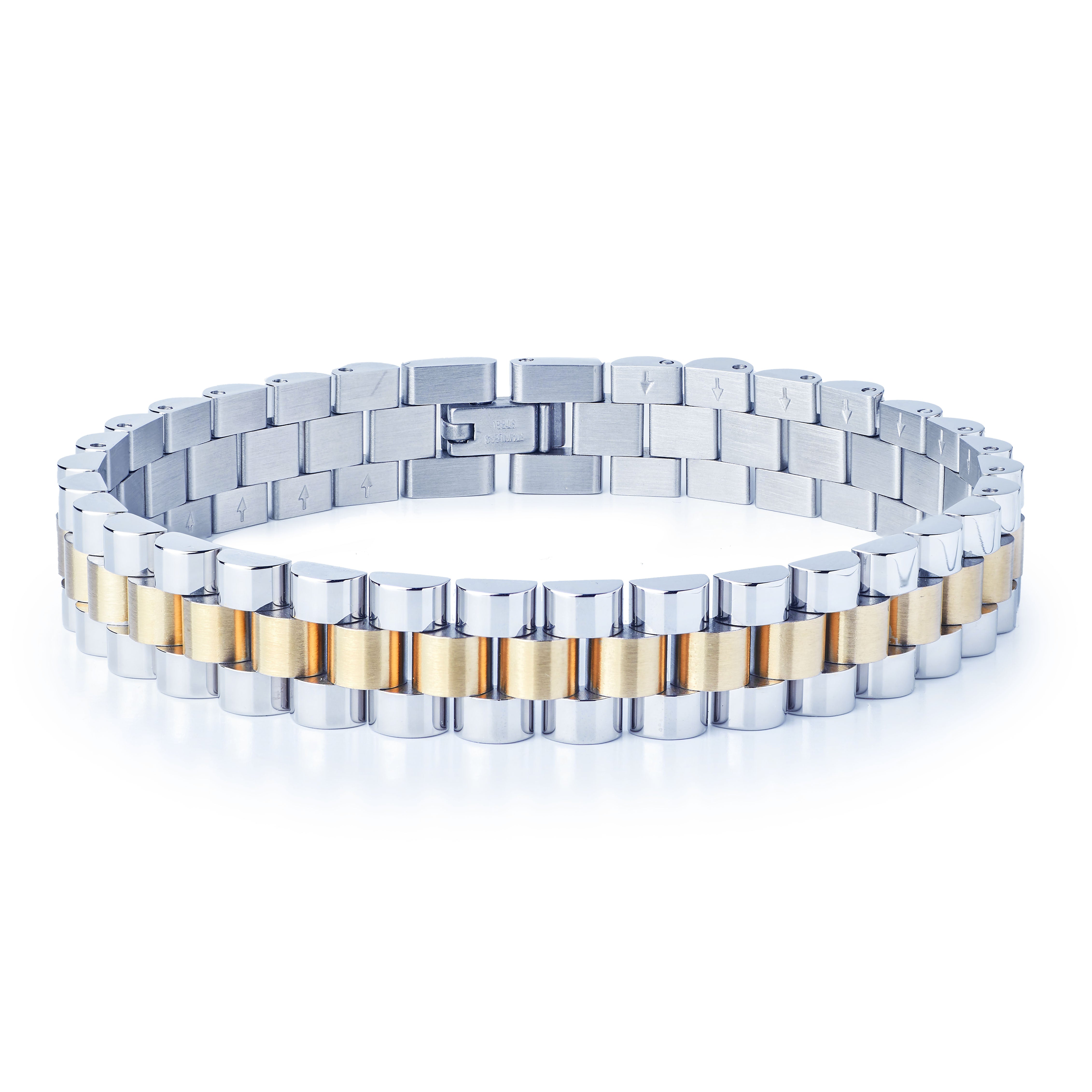 Unlock an elegant style with this 11.6MM WATCH LINK BRACELET! This gorgeous ion-plated stainless steel bracelet dazzles with its distinct shine, perfect for any special occasion. Achieve the perfect fit that fits your wrist like a glove without having to worry about it breaking or rusting. Experience luxury with this beautiful bracelet!