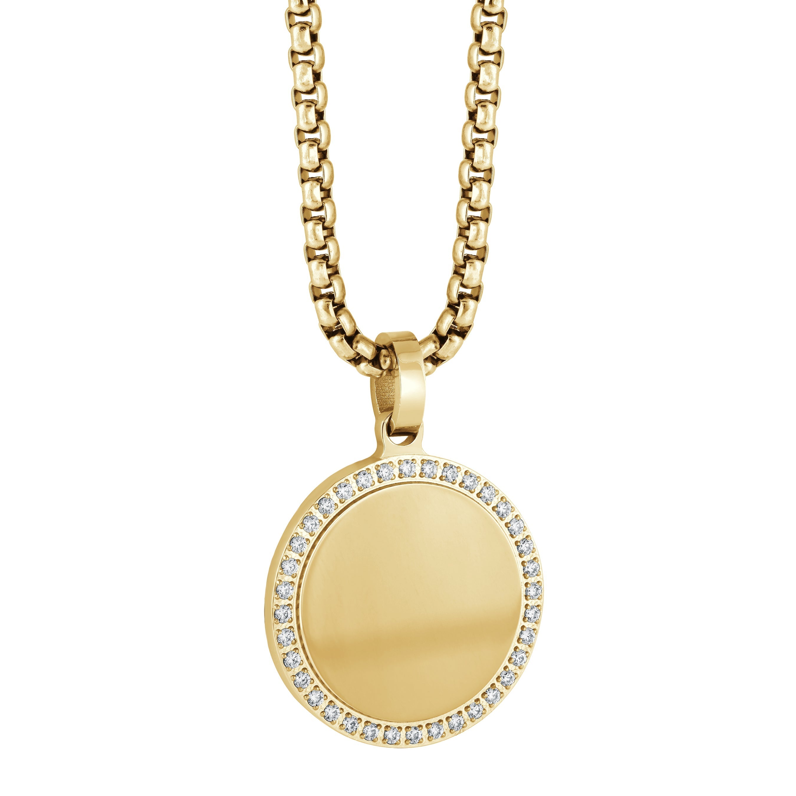 Our Studded Circle Pendant combines minimalist elegance with a touch of sparkle. This pendant features a sleek circular design adorned with meticulously set studs, creating a radiant and sophisticated look. Crafted from high-quality materials, it offers both durability and a stunning appearance, perfect for everyday wear or special occasions. Ideal for those who appreciate refined accessories with a modern flair, our Studded Circle Pendant is a versatile and timeless addition to any jewelry collection.