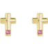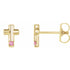 14K Natural Pink Tourmaline Cross Earrings - 14K Yellow