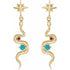 14K Natural Turquoise & Natural Ruby Snake Earrings - 14K Yellow